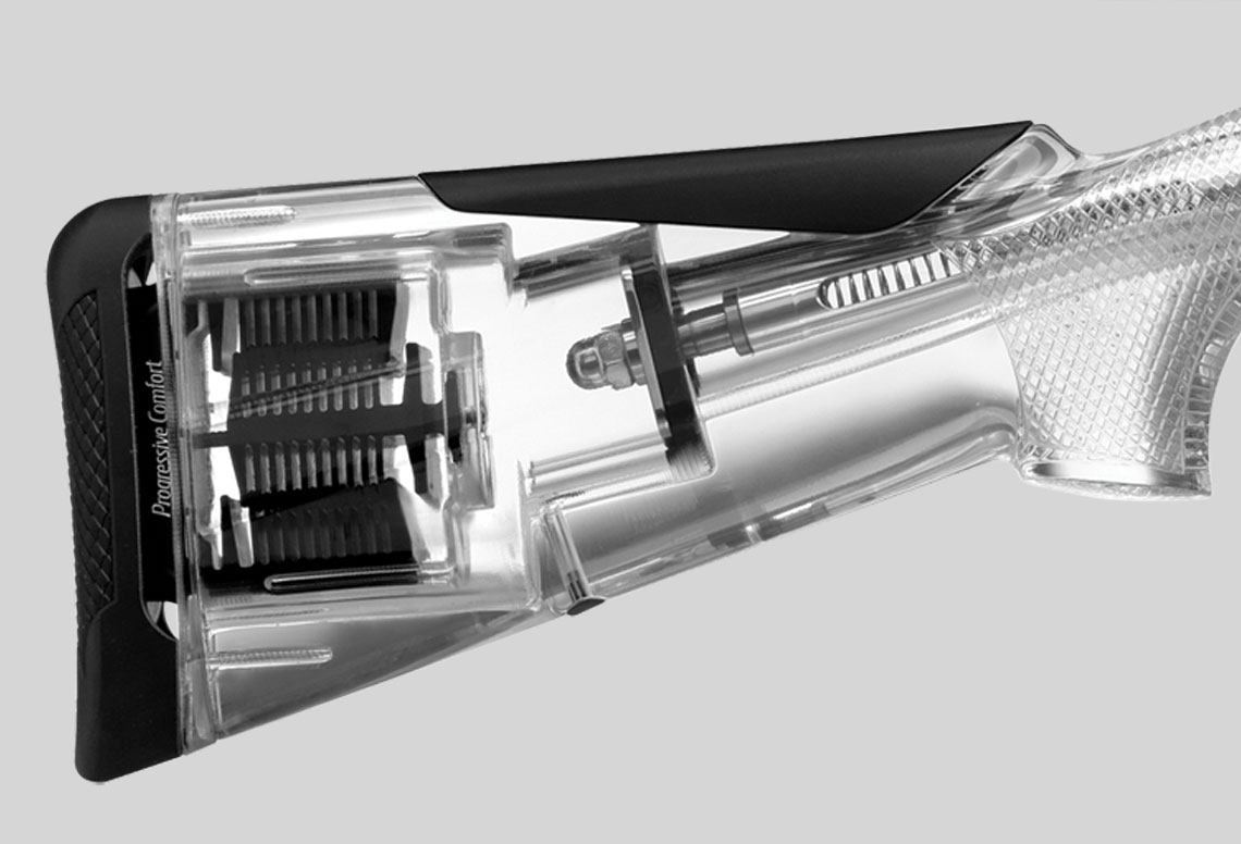 The innovative progressive recoil absorption system kicks in gradually according to cartridge and ammunition loading. This is the true essence of comfort, an invisible, yet highly sensitive system.