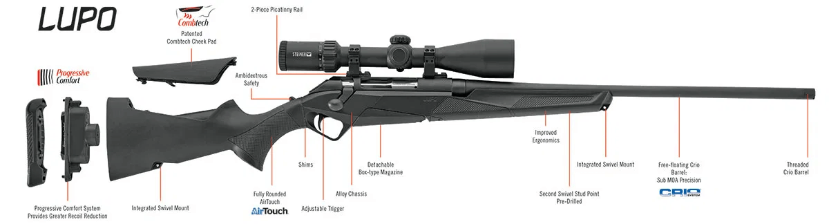 The LUPO is packed with innovative features—including 7 exclusive Benelli patents that add up to hunting rifle that provides a customized fit, handles beautifully and proudly carries a 3-shot sub-MOA guarantee.